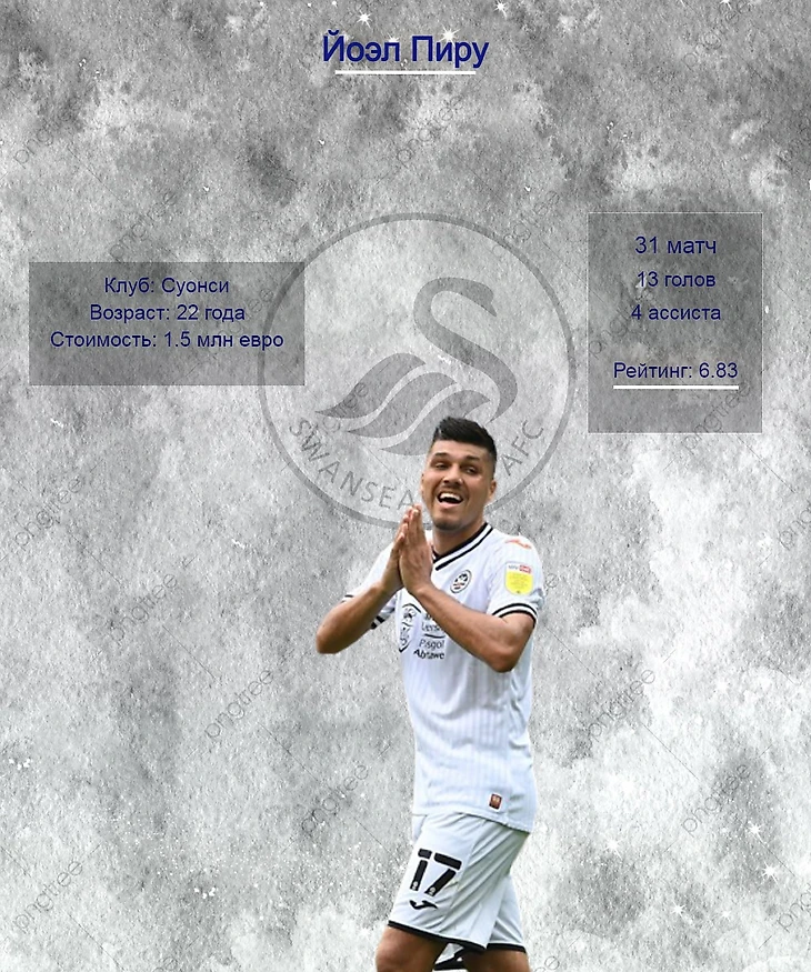 Сейчас Суонси находится на 17 месте в таблице, а могла бы плестить в самом конце, если бы не Йоэл. В доказательства этого утверждения, можно привести в пример огромный процент вклада в игру – 38%. Это огромное влияние достигнуто не только голами, но и высоким качеством передач – 79%.