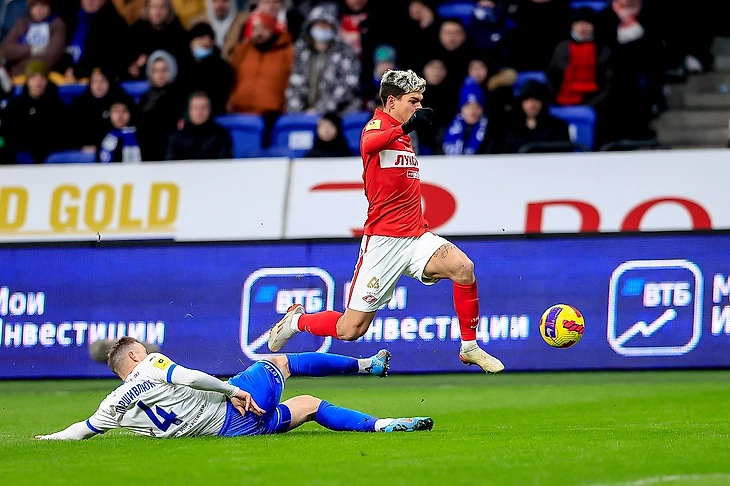 Перед своей штрафной за контроль у «Спартака» отвечали в первую очередь Жиго и Мартинс. Люксембуржец, несмотря на то что на позиции «бокс-ту-бокс» вновь много суетился, классно блокировал забросы бело-голубых в финальную треть, выиграв четыре верховые единоборства.