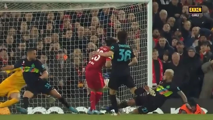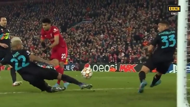 Один из самых зрелищных моментов игры – сэйв Артуро Видаля в конце матча. Хозяева довели мяч до Луиса Диаса, который стоял на линии вратарской и был готов забить. Смотрите, с этого ракурса кажется, что мячу просто некуда деваться, кроме ворот.