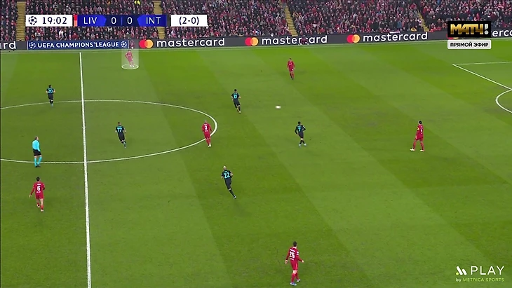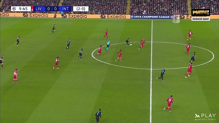 • При этом трансформировать этот контроль в доминирование и постоянный источник моментов «Ливерпуль» не мог – «Интер» прекрасно оборонялся позиционно.