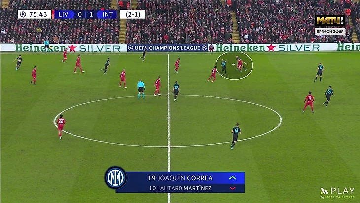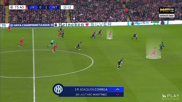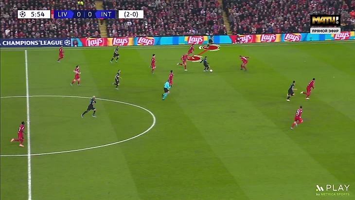 Команда Индзаги хорошо сдерживала соперника в этой стадии, но, уступая 0:2, они определенно планировали более агрессивную игру – не получилось, так как соперник слишком хорош. Иронично, что именно эпизод прессинга привел к единственному голу (хотя там важнее шикарное исполнение Лаутаро). Увы, в большинстве таких ситуаций «Ливерпуль» образцово контролировал гостей.