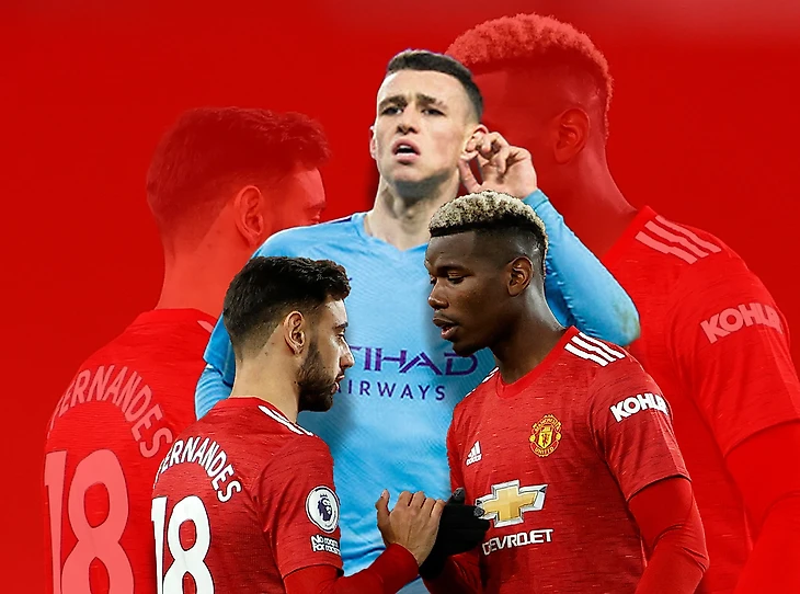 Манчестерское дерби показало некоторые тенденции современного футбола, одновременно вскрыв проблемные места красной половины Манчестера. По стартовому составу уже было понятно, что игра начнется без форвардов, именно их отсутствие (и ещё некоторых деталей) мы и разберем. Для Манчестер сити игра без форвардов - естественная среда обитания. Фоден уже давно адаптировался к ложной девятке. Главная задача молодого англичанина - опускаться в центр поля и создавать численное преимущество для продвижения мяча. Зрелость Сити олицетворяет тот факт, что при отсутсвтии игрока на определенной позиции (в данном случае на позиции форварда), игроки своевременно заполняют освободившееся ранее пространство.
