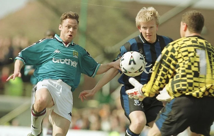 Очевидно, что 1998/99 был совсем другим сезоном для «Сити», который изо всех сил пытался выбраться из того, что сейчас является Лигой Один. Они обыграли «Джиллингем» по пенальти в финале плей-офф, уступая со счетом 0:2 в основное время, а затем дважды забили в компенсированное.