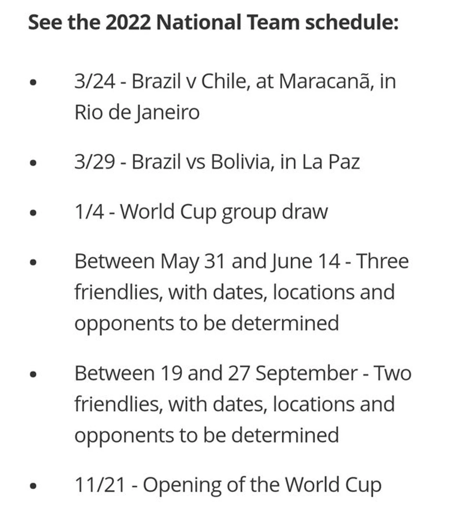 И до ЧМ у Бразилии остается еще 5 товарищеских матча (с Аргентиной по сути он таковым и будет являться, да и КБФ попросил ФИФА перенести матч в Европу именно для удобной логистики)