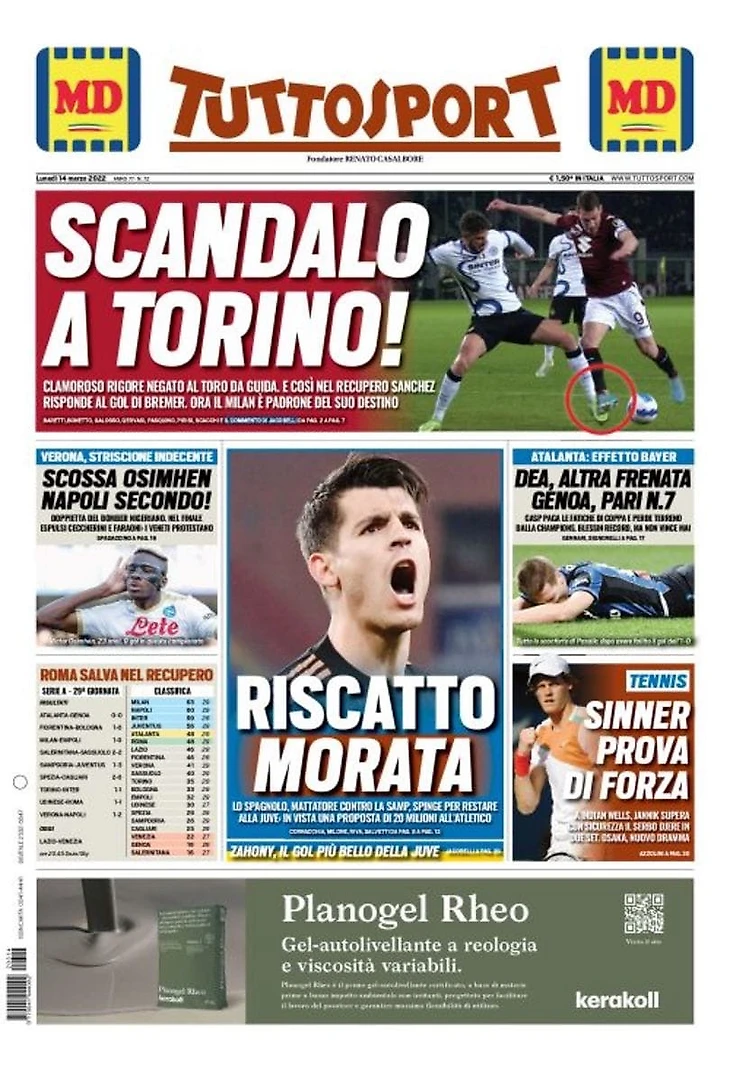 «Искупление Мораты» – такой заголовок TuttoSport посвятил разбору ситуации в «Юве»: «Испанец, ставший главным героем против «Самп», подталкивает к тому, чтобы остаться в «Юве»: предполагается предложение в 20 миллионов для «Атлетико».