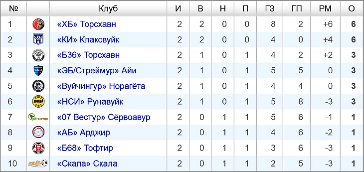 «КИ» Клаксвуйк – «Б36» Торсхавн – 1:0 (1:0) Голы: Бьярталуй (10)