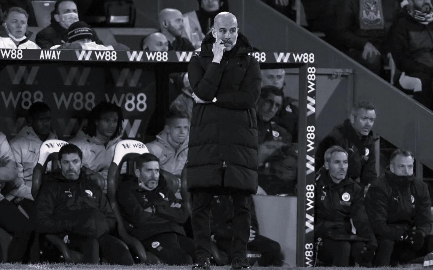 Перекладины Кансело, промахи Лапорта, незамыкания Бернардо Сильвы... В течение всего матча Орлы не просто оставались в игре, но и могли повторить свой предыдущий успех на Этихаде. И если команда продолжала играть, атаковать и не сдаваться, то Гвардиола будто бы сдался первым. Я сейчас не критикую его за то, что он не заменил того игрока на этого. Замены иногда стоит делать просто ради самих замен, чтобы освежить если не состав, то хотя бы атмосферу в нём. Во время второго тайма так и было слышно: "Алло, Ман Сити, у тебя есть замены - используй их!!"