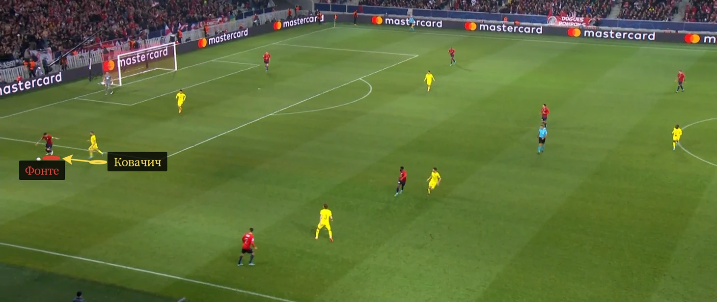 Ковачич был вынужден помогать в глубине, потому что «Челси» страдал от прессинга «Лилля». На пресс-конференции перед игрой Жослен Гурвеннек поставил задачу: заставить соперника как можно дольше оставаться в первой трети. Игроки справились. Помогла умная персональная модель, которая выдавливала лондонцев во фланги и контролировала опорную зону.