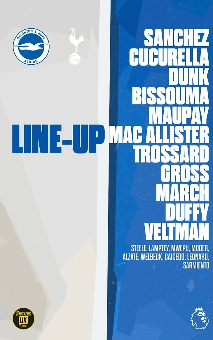 А теперь, перейдём к матчу. Вчера, Брайтон принимал Тоттенхэм. Вот стартовые составы команд: