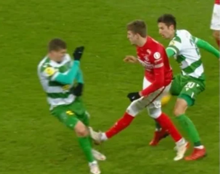 - Игрок (Соболев) после того, как сыграл в мяч продолжил движение своей ногой в направлении ноги соперника и, не предприняв ничего, чтобы избежать контакта, совершил его открытыми шипами с незащищенной частью голени соперника, нанеся ему серьёзное повреждение. Эти действия игрока Спартака несли угрозу здоровью и безопасности соперника.