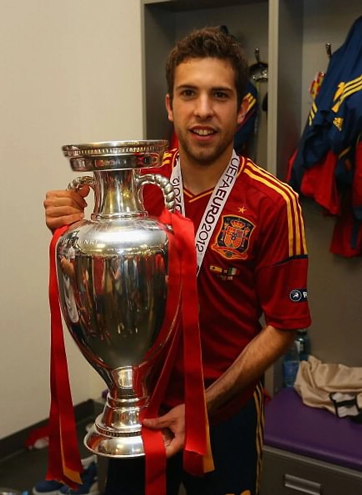 Альба был включена в команду Висента Дель Боска(Vicente Del Bosque) для Евро-2012 в Польше и Украине и играла в каждом матче. Испания выиграла турнир. Он выполнил кросс для Хаби Алонсо, чтобы открыть счет в четвертьфинальной победе над Францией 2-0.В финале против Италии после прохода Хави Эрнандеса (Xavi) во время контратаки он забил 2й гол в победе 4-0, став первым в истории защитником, забившим гол в финале чемпионата Европы. Вошёл в состав символической сборной турнира и получил звание «Игрок-открытие».