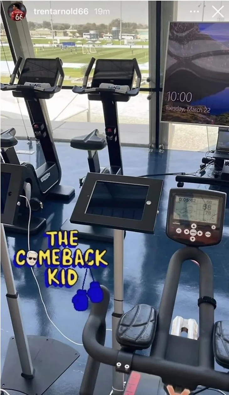 Трент Александр-Арнолд поделился фотографией своей тренировки в зале, сообщив, что он вернулся к работе.