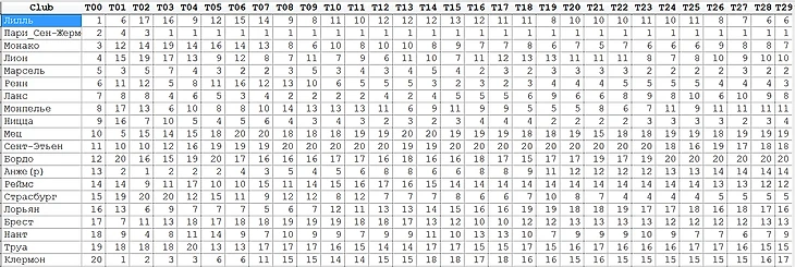Регресс у Лилля(1->6), Монако(3->7), Лион(4->10), Монпелье(8->11)
