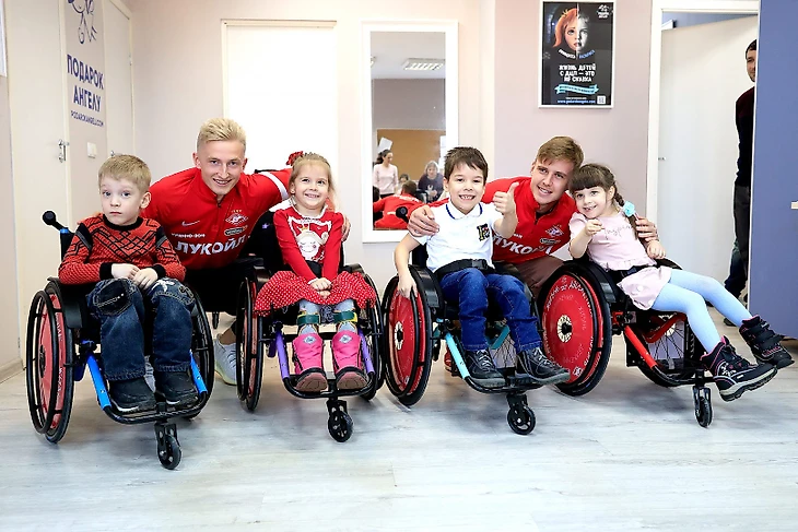 Литвинов и Игнатов передали спартаковские коляски для детей с ДЦП