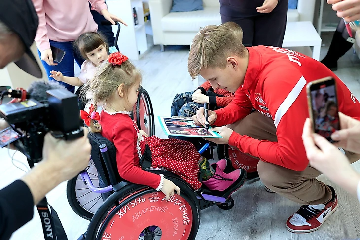 Руслан Литвинов и Михаил Игнатов лично приехали в Фонд «Подарок Ангелу», чтобы вручить брендированные спартаковские коляски и познакомиться с ребятами. Встреча получилась теплой и душевной: дети были рады приезду наших игроков и подготовили для них трогательные подарки. Конечно, и «Спартак» приехал не с пустыми руками: футболисты подписали наши фирменные футболки и пригласили ребят вместе с родителями на стадион. Уже 1 мая юные болельщики на новых колясках посетят игру с «Крыльями Советов»!