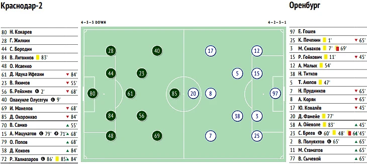 «КРАСНОДАР-2» - «ОРЕНБУРГ» - 5:2 (2:0)
