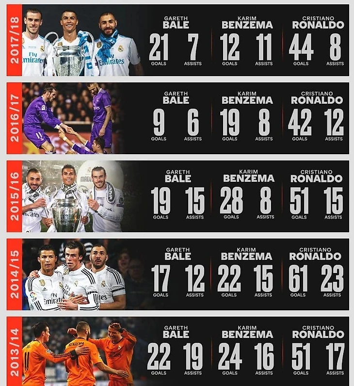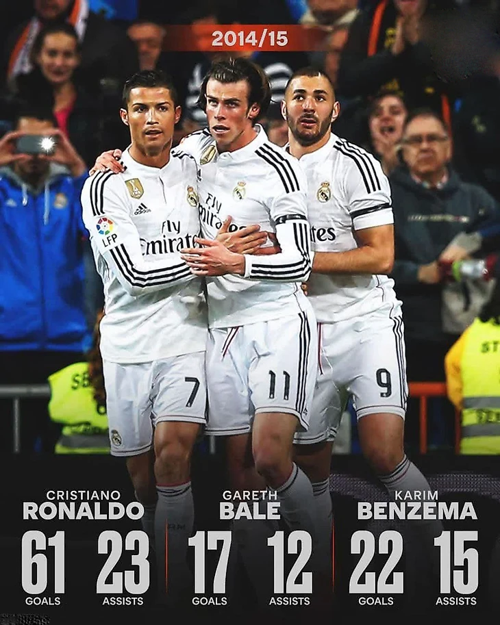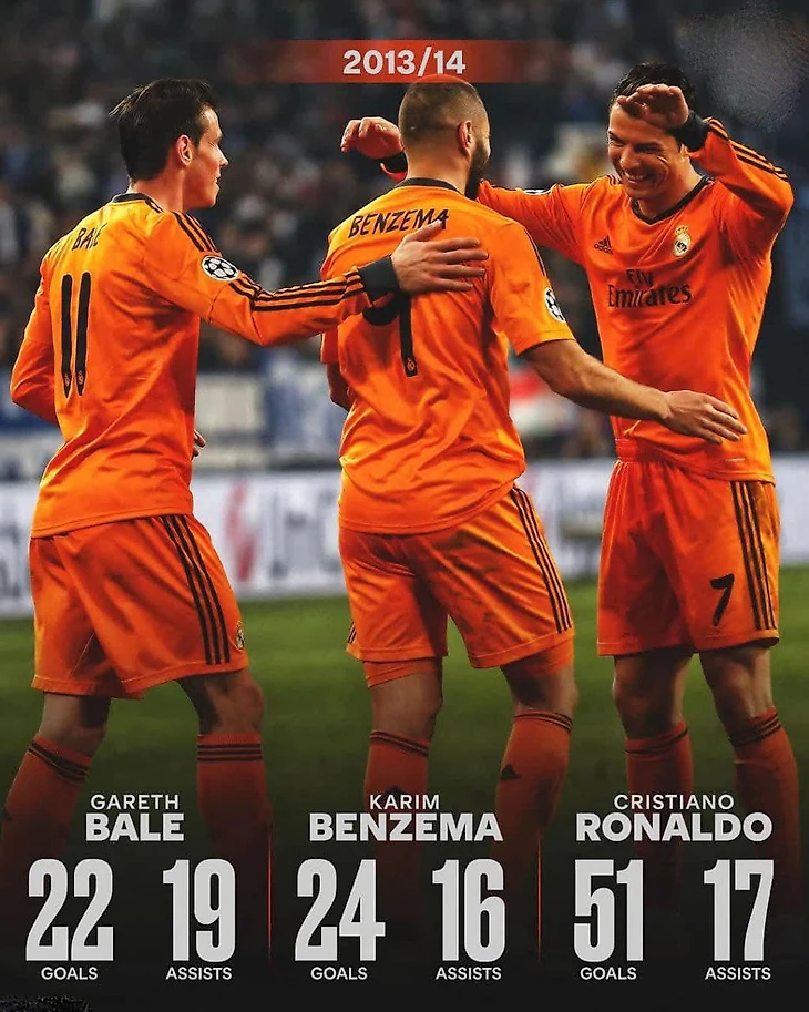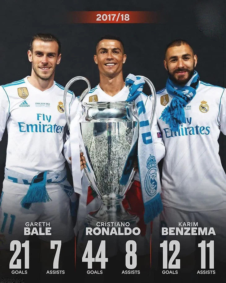 𝕭𝕭𝕮: 𝕭𝖆𝖑𝖊, 𝕭𝖊𝖓𝖟𝖊𝖒𝖆, 𝕮𝖗𝖎𝖘𝖙𝖎𝖆𝖓𝖔 — 𝟜𝟜𝟚 гола, 𝟏𝟗𝟐 ассиста, 1️⃣3️⃣трофеев (включая 4 Лиги чемпионов) 💫