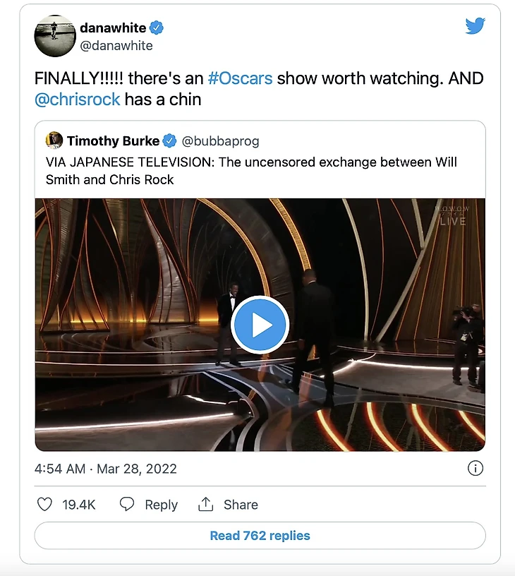 Президент UFC Дэйна Уайт отреагировал на скандал, случившийся на церемонии «Оскар».