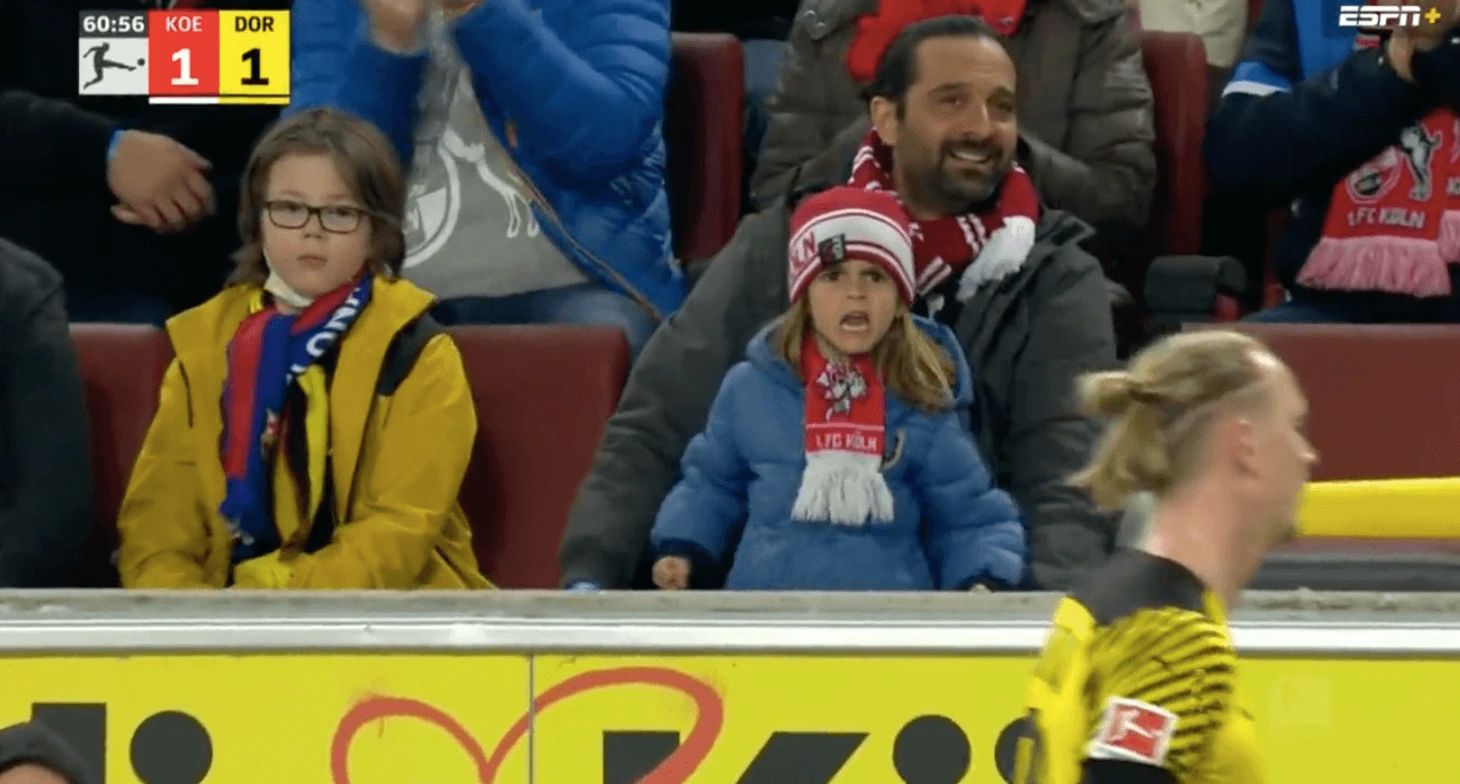 Главный герой матча между «Кельном» и «Боруссией» (1:1) – маленький болельщик хозяев. На 61-й минуте он сердито прорычал в сторону проходящего мимо Мариуса Вольфа из «Дортмунда». Несмотря на всю вложенную ярость – реакция получилась милой.