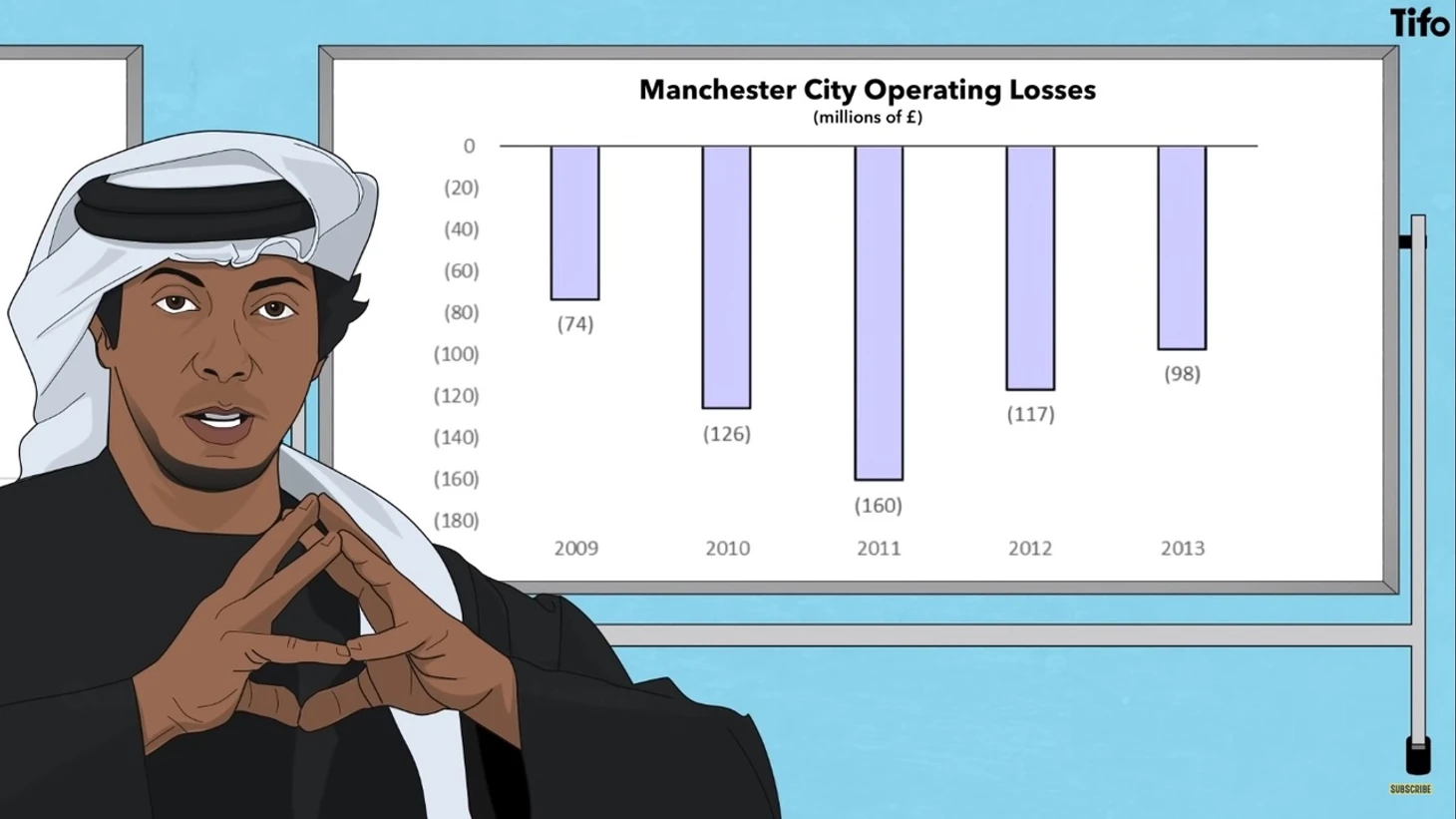 В сезоне 2010/11 Сити занял 3-е место, получив право на участие в Лиге чемпионов, и это помогло клубу получить более выгодные спонсорские контракты, предложения которых чаще всего исходили от ближневосточного рынка. К тому времени, когда Манчестер Сити выиграл Премьер-лигу в сезоне 2012/13, выручка увеличилась более чем втрое менее чем за пять лет, а разрыв между двумя манчестерскими клубами сократился с 192 миллионов фунтов стерлингов до 92 миллионов фунтов стерлингов.