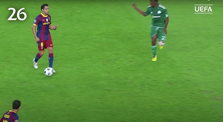 С последним утверждением Бочини могут поспорить Хави и Серджи Бускетс. Как правило, La Pausa – финальная часть эпизода, действие перед голевым или предголевым пасом. Но талант Хави и Бускетса настолько уникален, что позволяет использовать «паузу» не только в завершении, но и при развитии атаки. При этом подход отличается: Хави дожидался, пока откроется линия паса, Бускетс – обманывает соперника и даже манипулирует им.