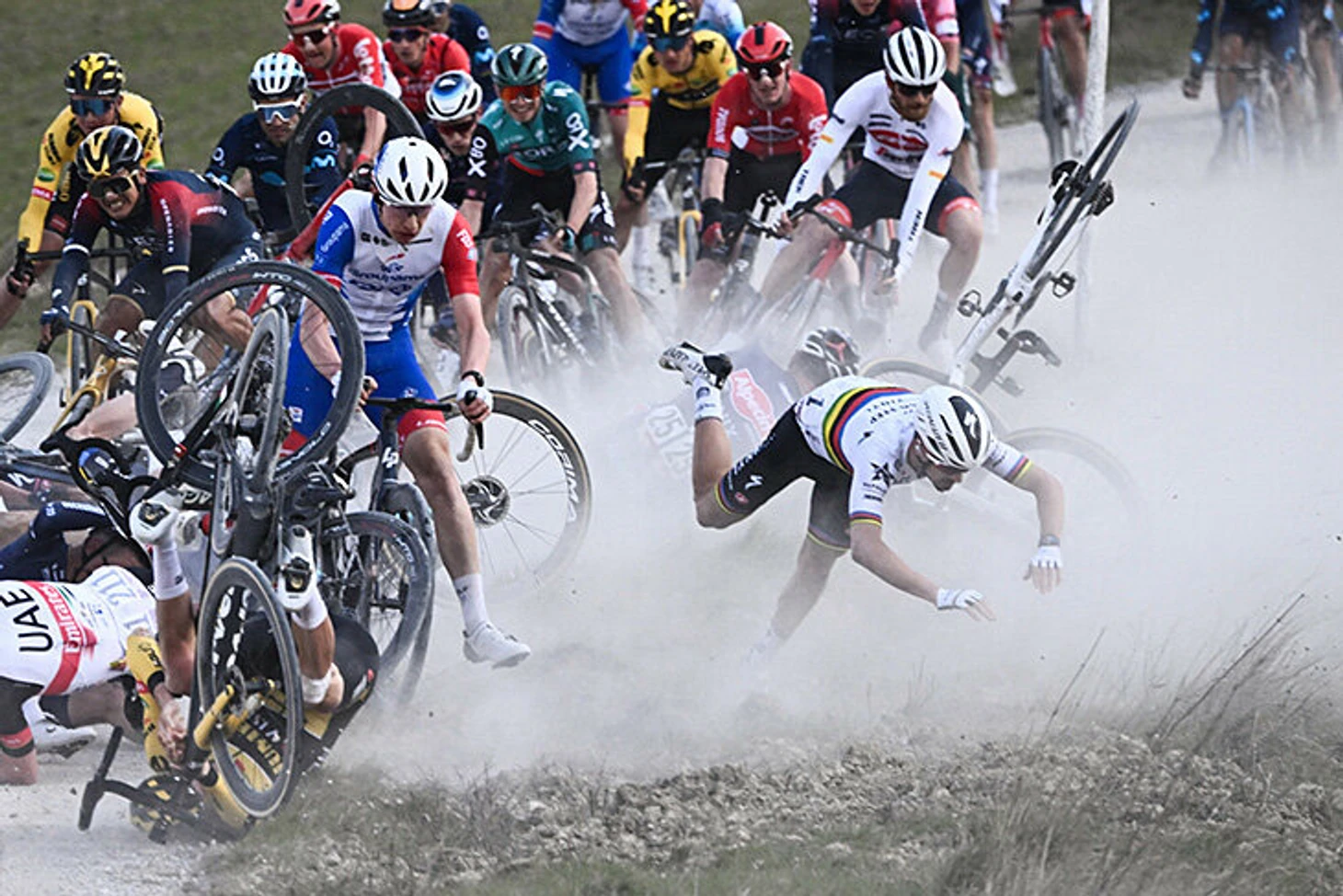5 марта. Однодневная велогонка «Страде Бьянке». Жюлиан Алафилипп словно над пропастью.