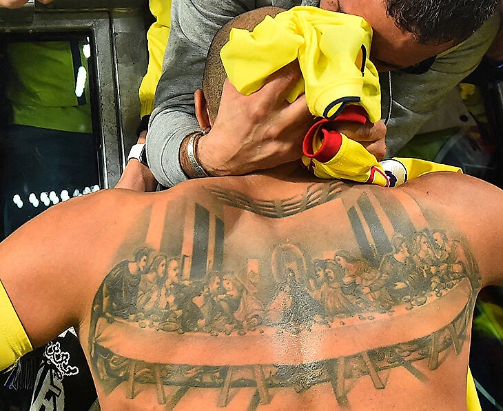 А еще полузащитник «Вильярреала» показал нам, что на спине у него Тайная вечеря.