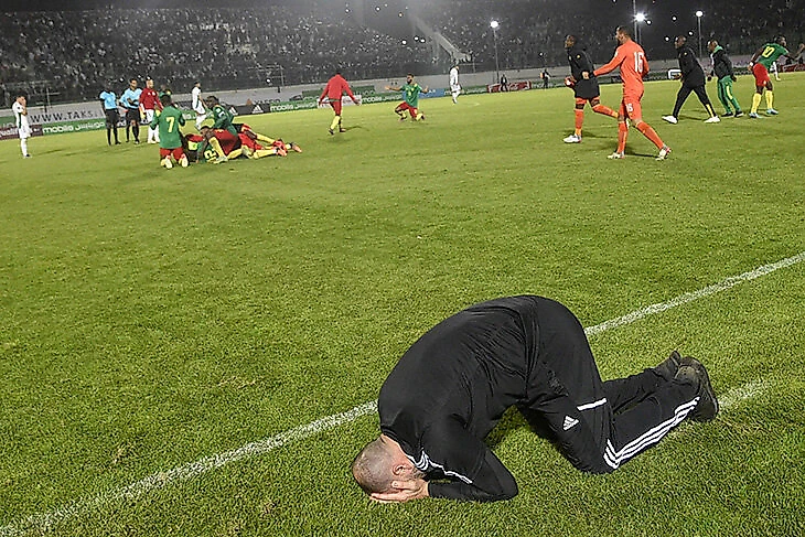 29 марта. Боль Джамеля Бельмади, тренера сборной Алжира, чья команда пропустила от Камеруна на последних секундах и не вышла на ЧМ.