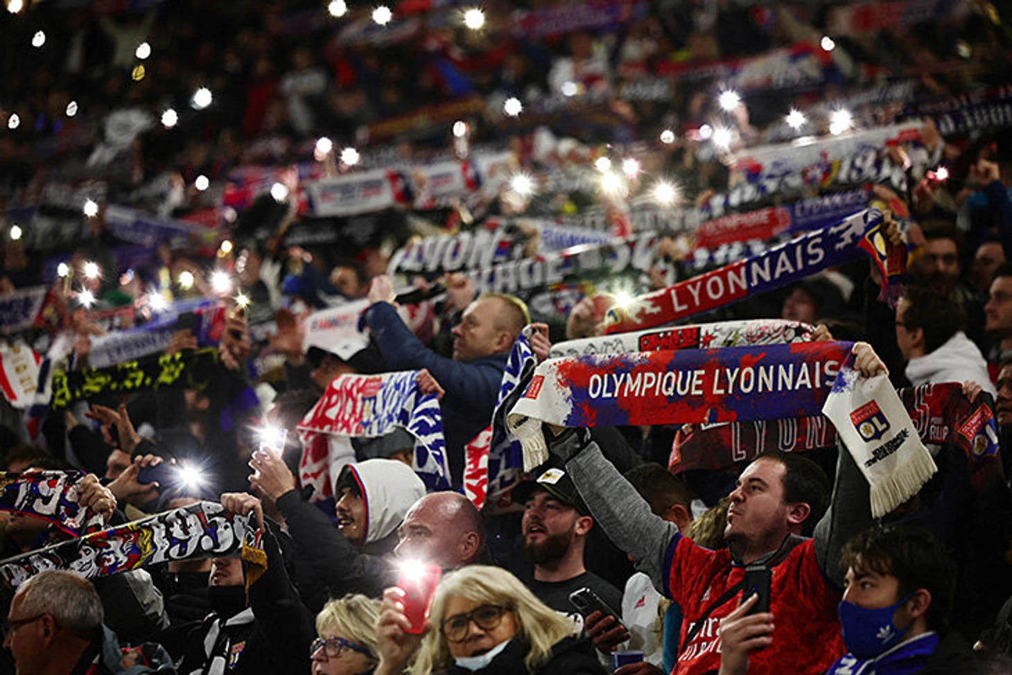 17 марта. Красочные шарфы и фонарики болельщиков «Лиона».