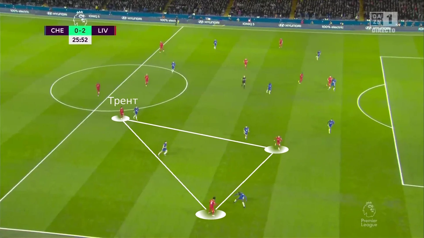 Просто теперь такие рывки занимают меньшую пропорцию от его действий. По взаимодействиям этот треугольник похож на механизм «Ливерпуля» на правом фланге, который возлагает аналогично широкие полномочия на Трента.