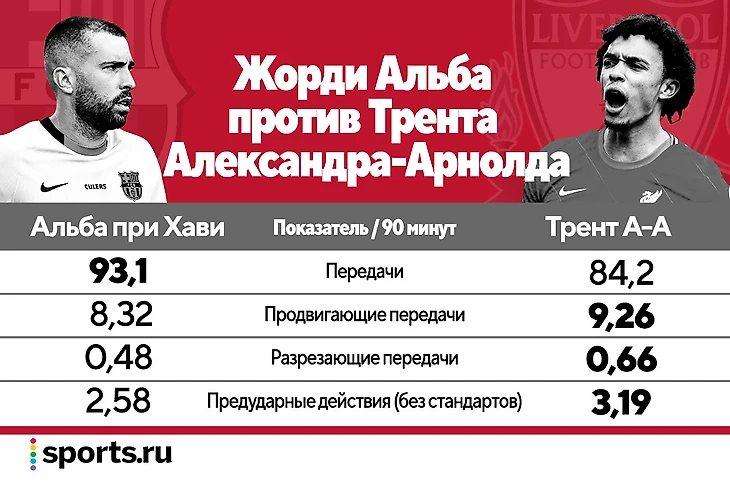 Альба при Хави сильно похож на Трента – огромная роль в продвижении, созидание из полуфланга, ротации внутри флангового треугольника