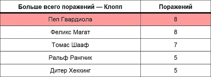 Менеджеры, которые больше всего обыгрывали Клоппа