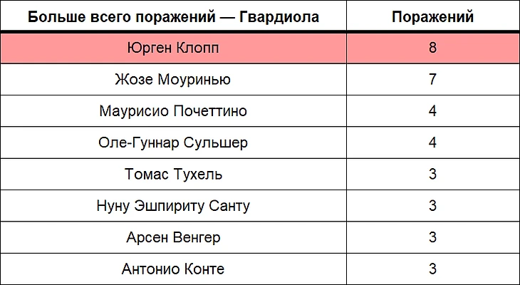 Менеджеры, которые больше всего обыгрывали Гвардиолу