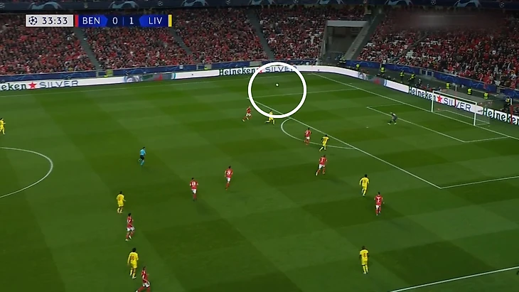 Трент получил мяч в центре поля и моментально запустил диагональ в штрафную на Луиса Диаса. Просто оцените, откуда стартовал Диас и куда в итоге прилетел мяч – идеальная точность.