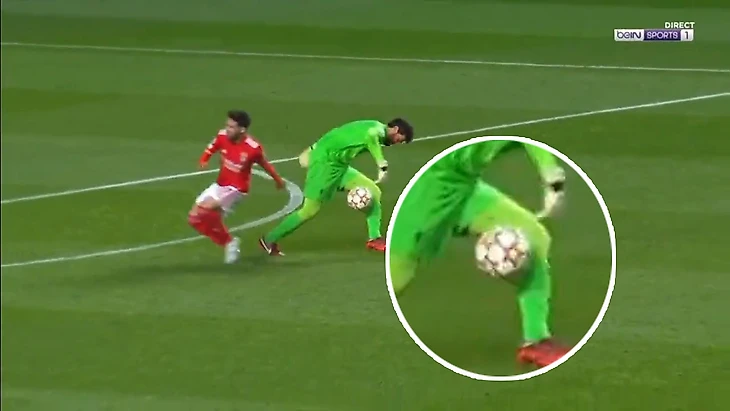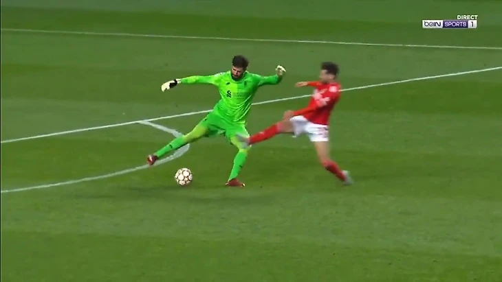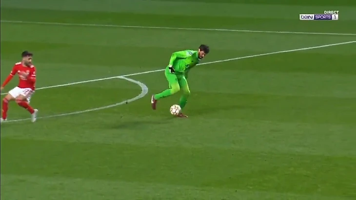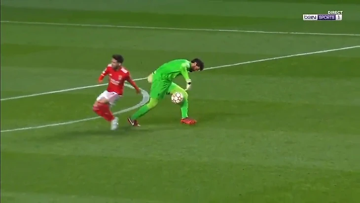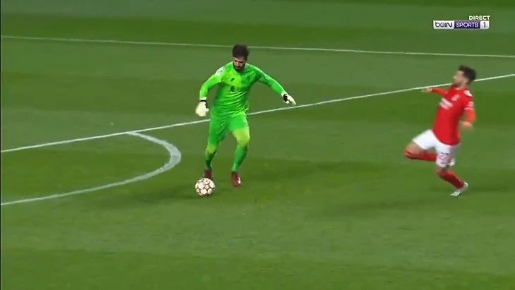 В конце матча с «Бенфикой» кипер «Ливерпуля» Алиссон решил, что он Мо Салах или Садьо Мане – и пустился в обводку за пределами штрафной.