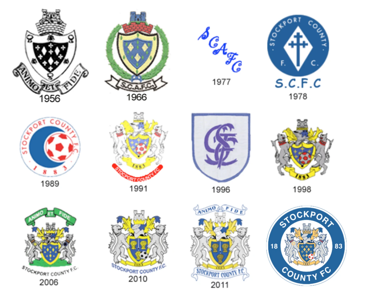 На пост натолкнула вот такая таблица эволюции эмблемы «Стокпорт Каунти» с самого начала и до конца.