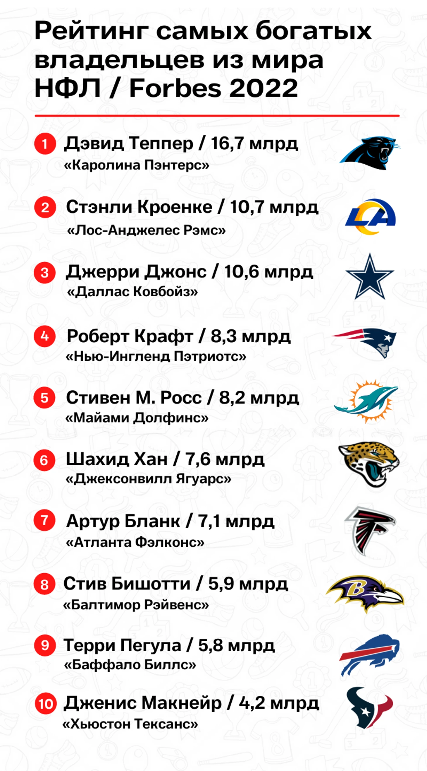 Топ-10 в рейтинге НФЛ / Forbes 2022
