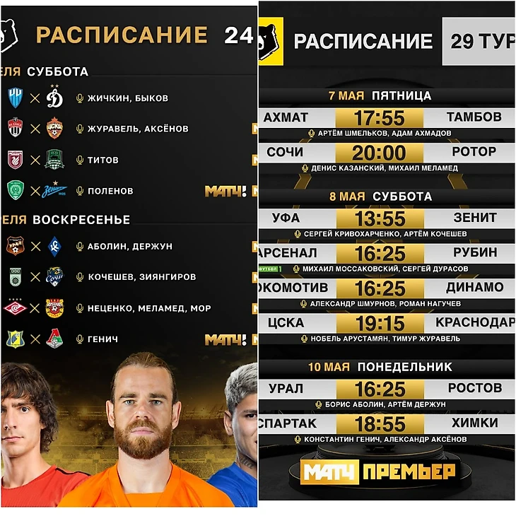 Как наглядный пример – список комментаторов на очередной тур РПЛ. И для сравнения – 11 месяцев назад.