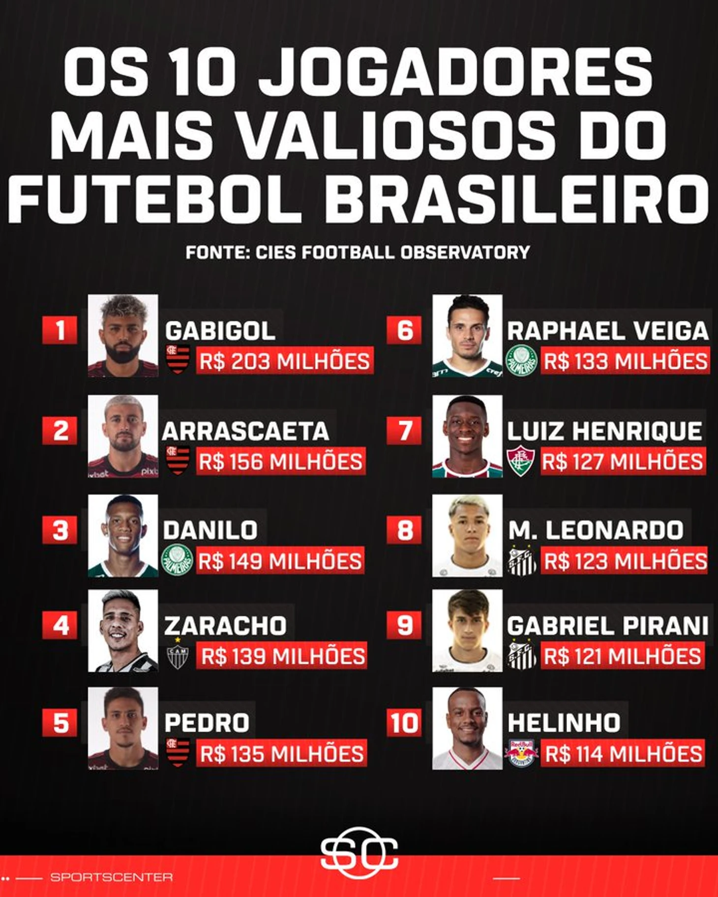 Лаборатория ФИФА CIES дает свой вариант самых дорогих бразильских игроков