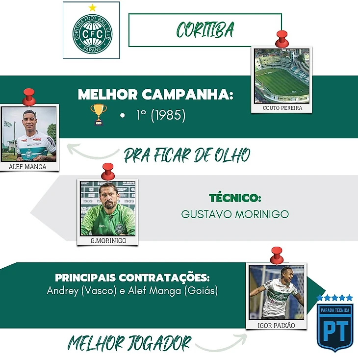 Коша вернулась. Вернулась и колоритное дерби Куритибы. Мне симпатична эта команда, и рискну предположить что в этом сезоне они приятно удивят. Парагваец Густаво Мориниго делает интересную банду и сам растет вместе с ней. Опытный Муралья еще в строю, центр обороны доверен опытным ребятам. Биро ждет своего шанса под Эжидио, а сама "Коритиба" ждет возвращения после травмы Натаниэла, на мой взгляд лучшего латераля прошлогодней Серии В. Может вырасти в звезду. В центр поля приобретены талантливые, но все никак не раскрывающие до конца свой потенциал Андрей из "Васко" и Тонни Андерсон. С ходу нашло общий язык вместе наводившее шорох в прошлом сезоне трио Лео-Гамальо-Манга-Пайшао. Алеф в новом клубе переквалифицировался из центрфорварда в правого края в угоду 36-летнему вице-бомбардиру прошлогодней Серии В Гамальо. Ну а Игор Пайшао рискну предположить что станет одним из открытий сезона, что в общем-то подтверждают первые туры.