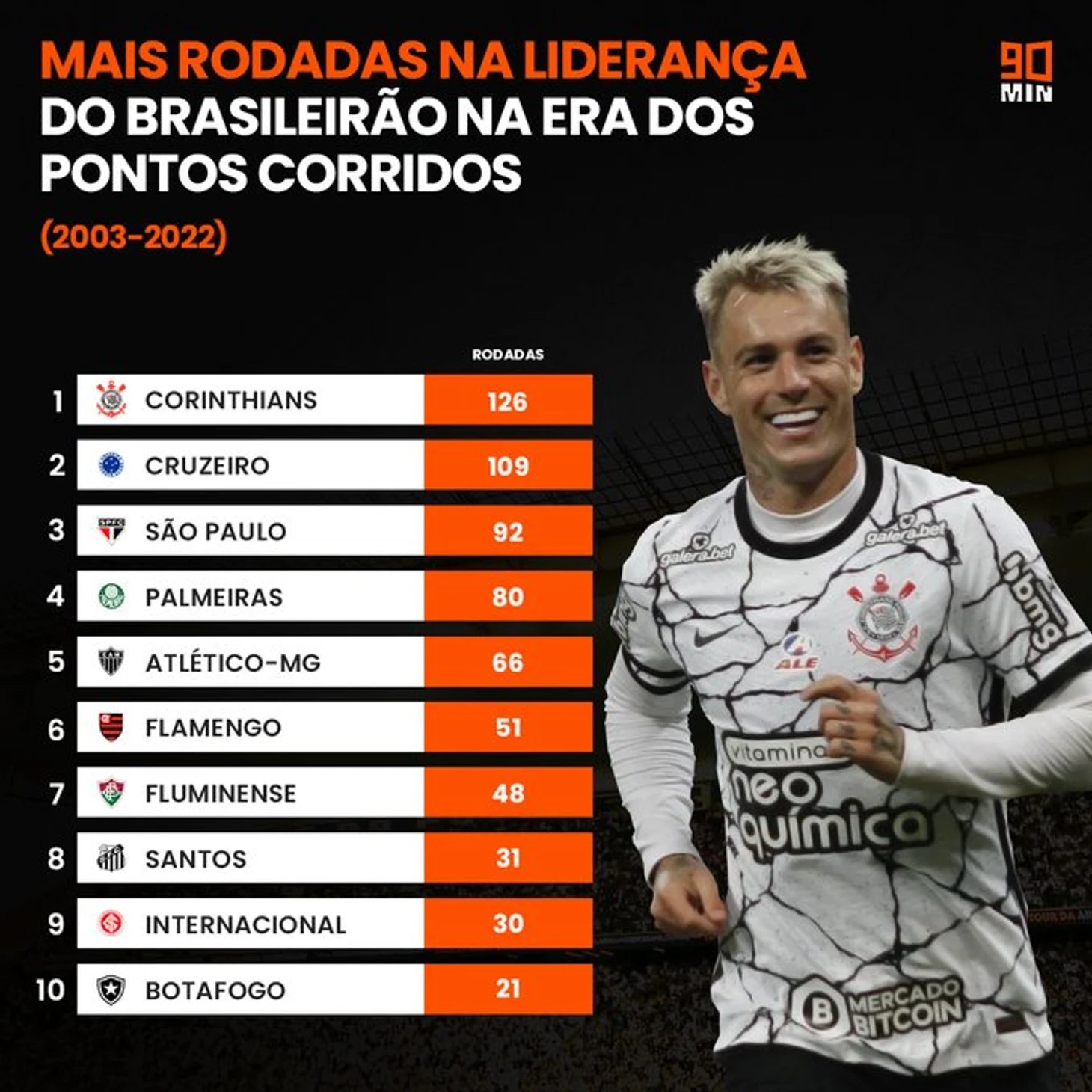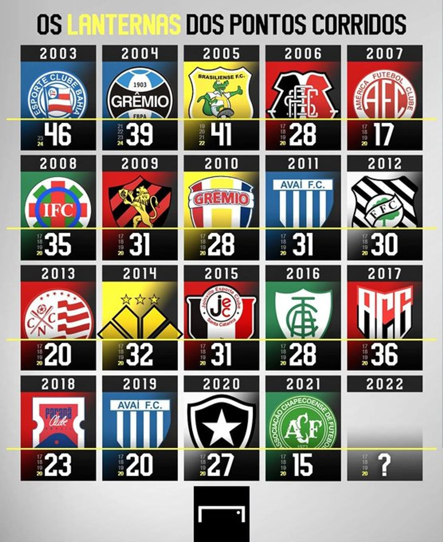 Клубы набравшие больше всего очков с тех пор как Бразилейрао перешел на схему с 20 командами в высшей лиге.
