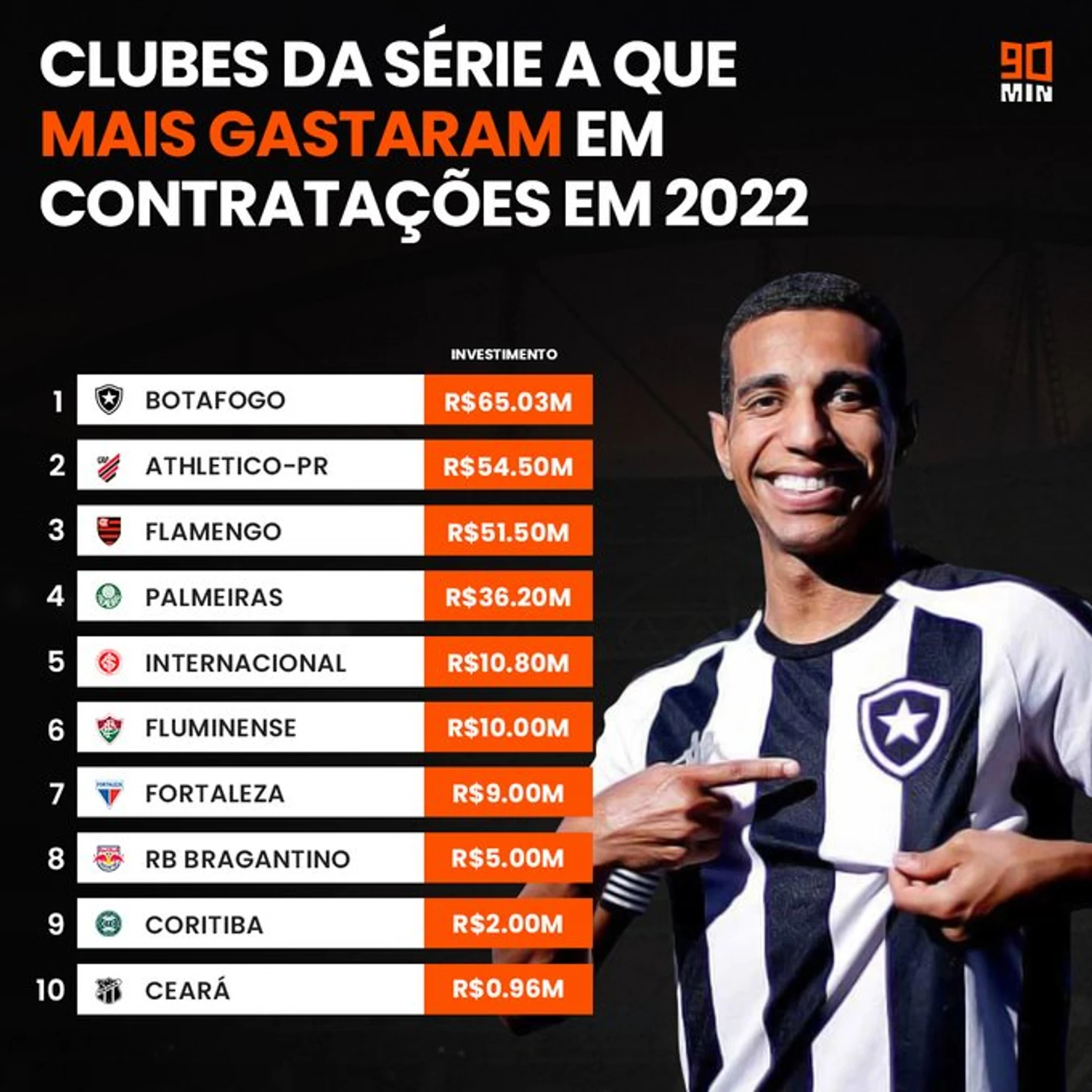 Команды, потратившие больше всего денег. Цифры в бразильских реалах.