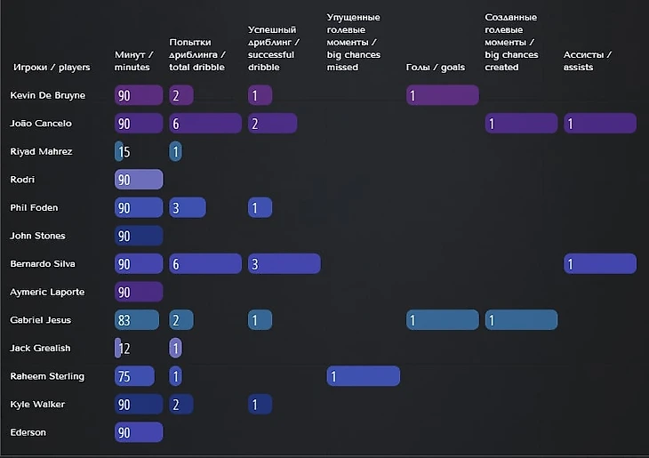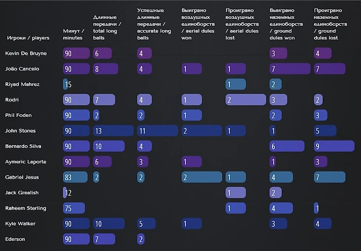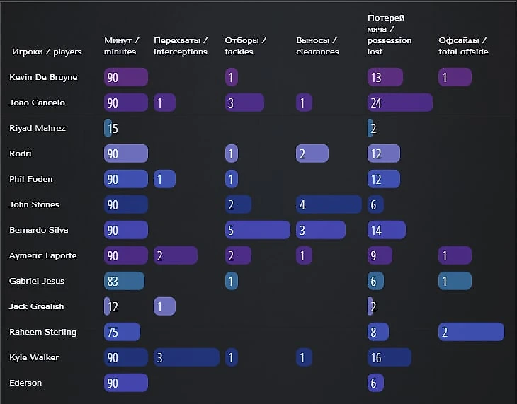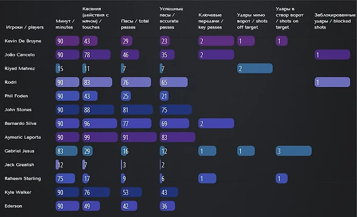 Меня зовут Тёмич, и в этой статье вы увидите подробнейшую статистику игроков в матче «Манчестер Сити» против «Ливерпуля» обеих команд с моим небольшим комментарием.