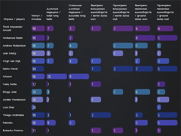 Самые пасующие у «мерсисайдцев» – Ван Дейк, Матип и Тьяго.