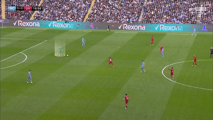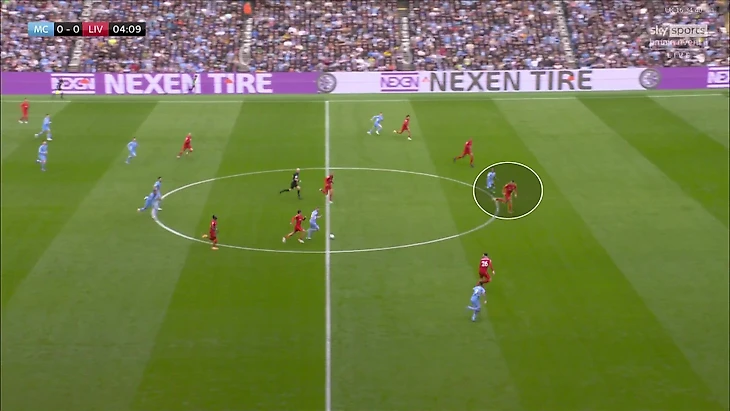 5. В первом тайме команда Гвардиолы регулярно ловила «Ливерпуль» на высокой линии. Прессинг Клоппа был менее интенсивным, чем обычно, а высокая линия защиты сохранилась. Это создало потенциальную уязвимость.