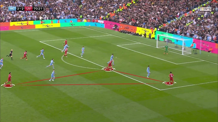 По традиции роли внутри треугольника могли быть разными – он построен на постоянной смене позиции. Но наибольший урон «Сити» наносили ситуации, когда Салаху позволяли развернуться с мячом под левой ногой.