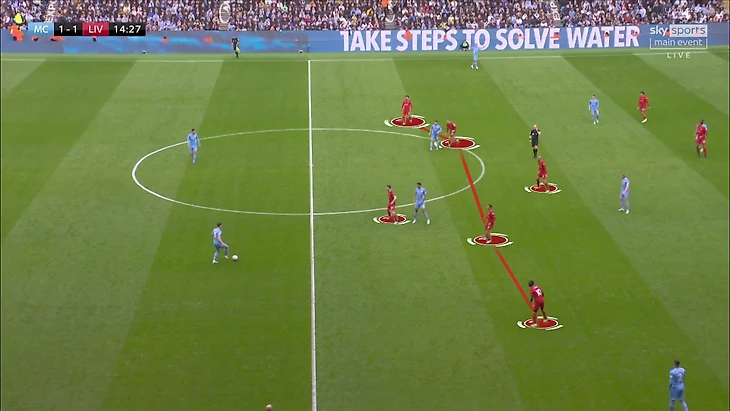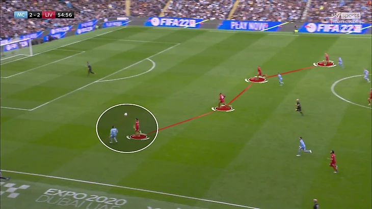 Это делало задачу «Ливерпуля» еще более трудной. Защищаться на пространстве после того, как проходит такая передача – уже проблема для обороняющейся стороны. А тут приходилось делать это в меньшинстве.