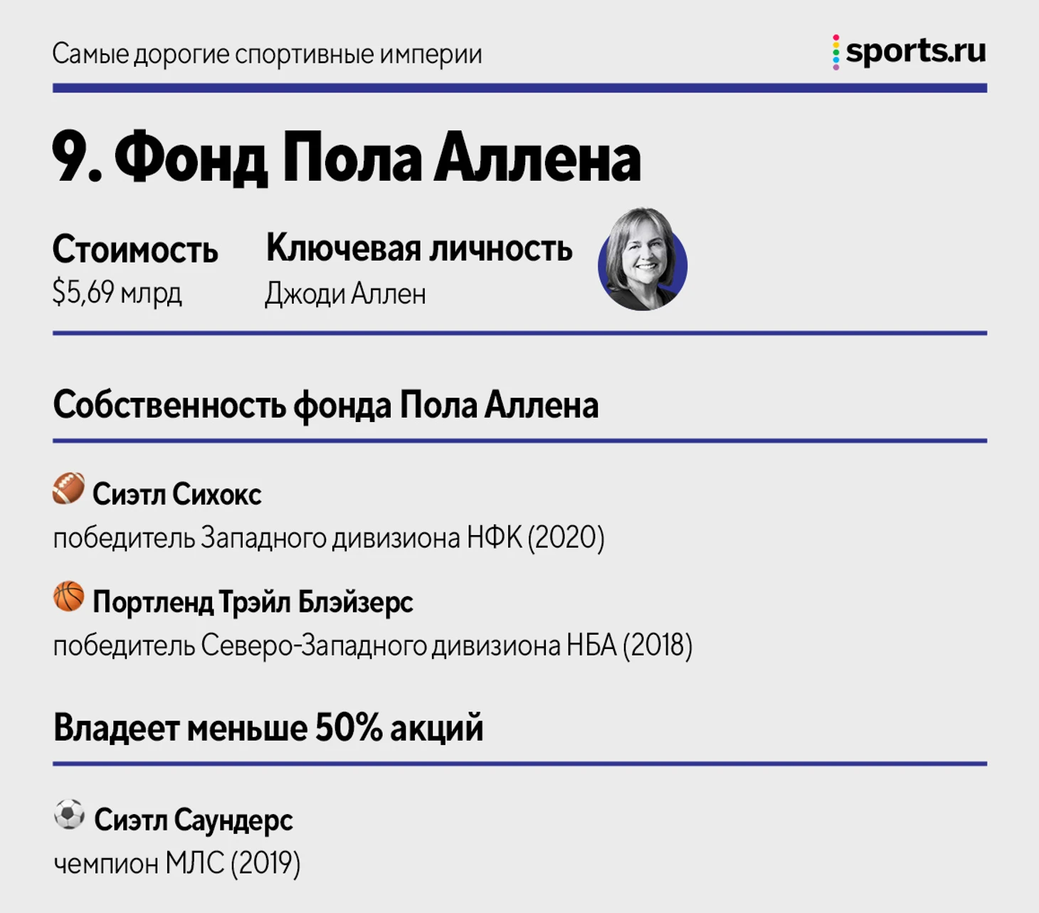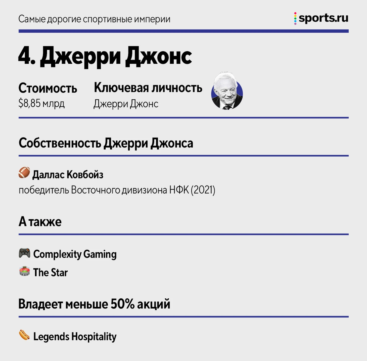 Самые дорогие спортивные империи: в топ-10 – 4 владельца из АПЛ, у самого богатого нет футбольного клуба