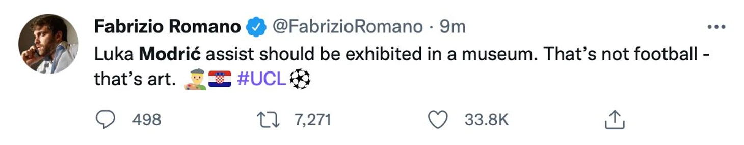 «Ассист Луки Модрича надо выставить в музее. Это не футбол, это искусство».