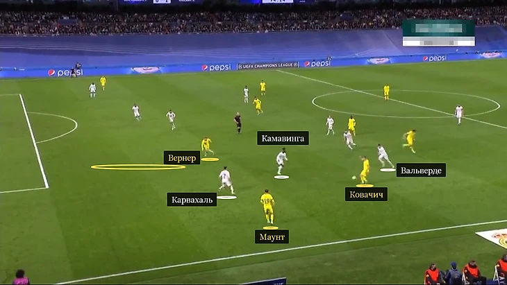 Несмотря на вмешательство ВАР, гол Алонсо затронул защитную структуру «Реала». Лука Модрич начал опускаться вдоль правого фланга, чтобы противостоять ширине «Челси». На 75-й минуте зона отойдет Эдуардо Камавинга, который только выскочил на поле и не отследил манипуляции соперника – забил Вернер.
